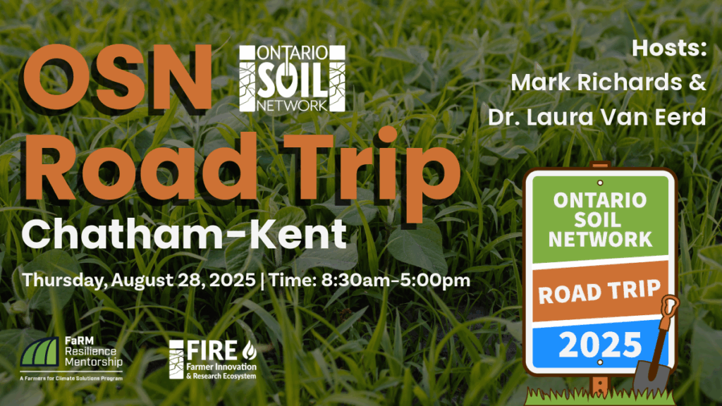 Farmer – Researcher Field Tours at University of Guelph Ridgetown Campus1pm – 5pm120 Main ST. E. Ridgetown, ON N0P 2C0Join the OSN for an opportunity to network with researchers from the University of Guelph Ridgetown Campus and learn about different research being done. This is a chance to build and strengthen connections between farmers and researchers. So bring your questions and curiosity!