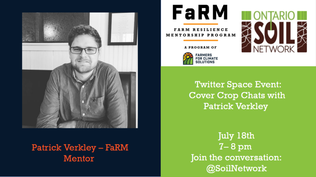 Join Patrick Verkley for a live Twitter Space discussion about cover crops on July 18th from 7-8pm